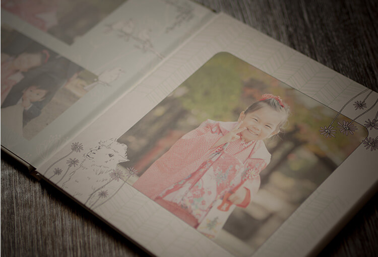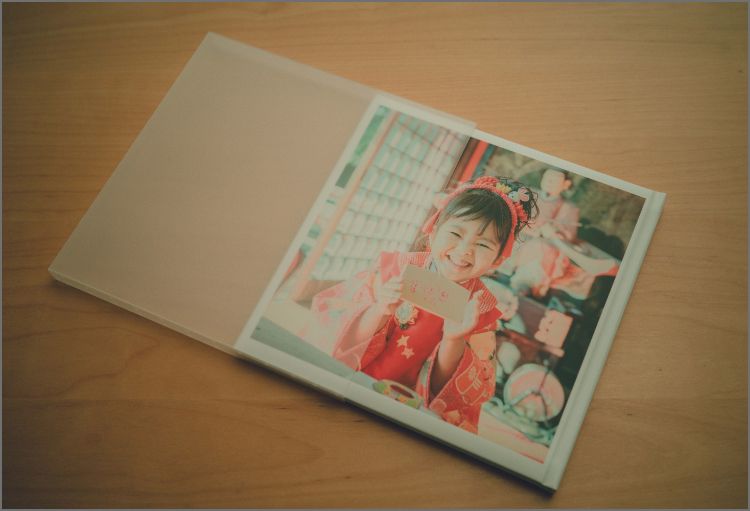 絵本のようなしっかりとした作りで、そのままお部屋に開いて飾ることもできるフォトブックです。