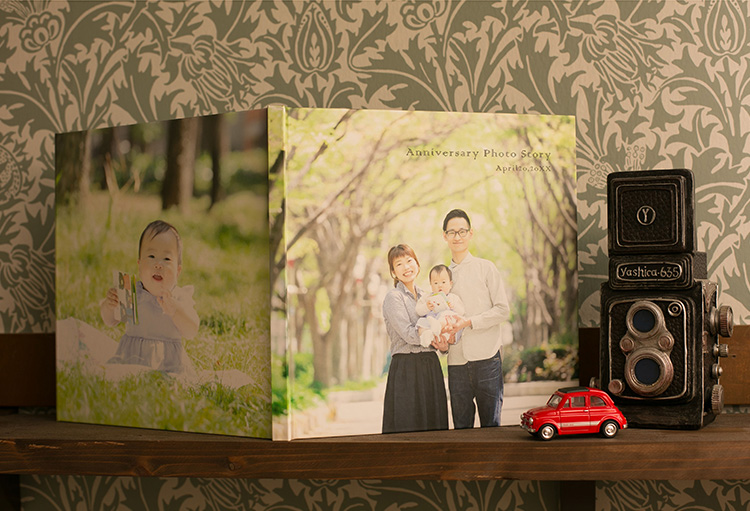 家族写真の出張撮影 + 開いて飾れるフォトブック(2面)
