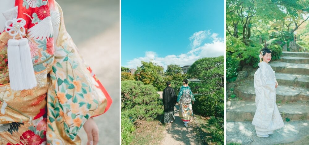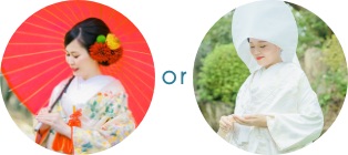 ⾊打ち掛け、⽩無垢をお選びいただける
